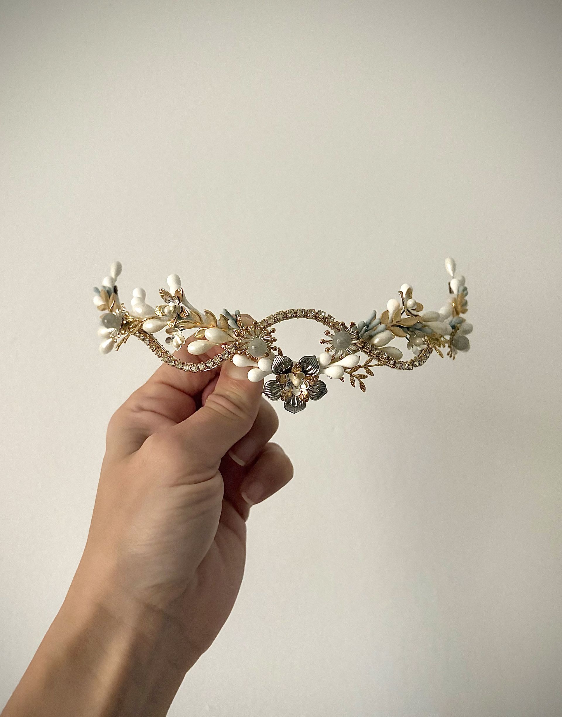 Dentro de la amplia gama de detalles para el pelo para novia destacan los tocados personalizados de novia, donde puedes elegir cómo deseas que sea tu tiara de novia personalizada - desde las flores, a la forma, el tamaño y los colores de tu corona personalizada de novia.