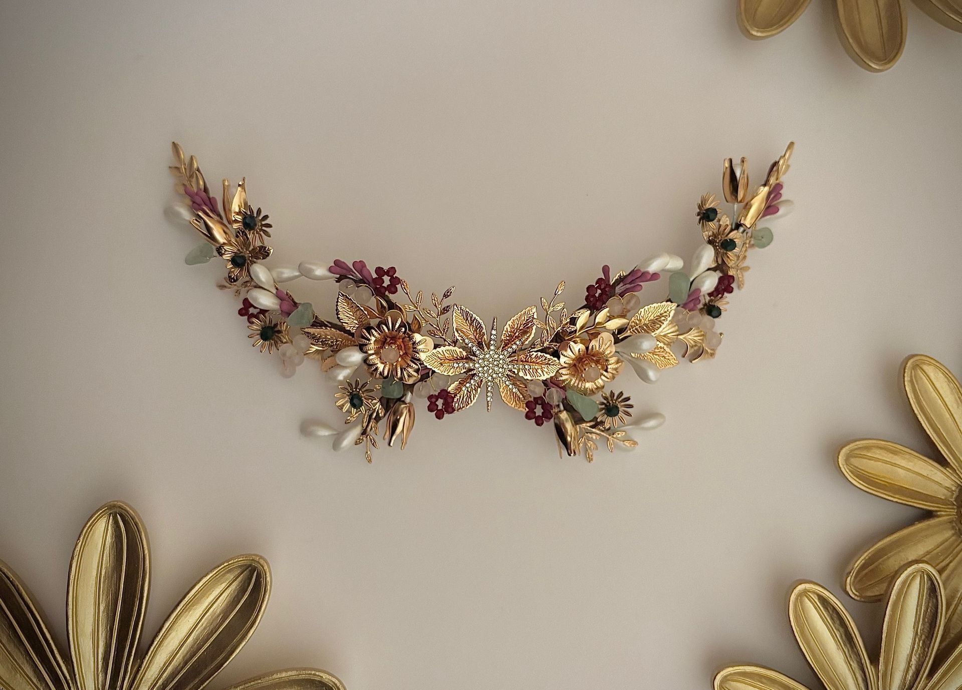 Los tocados de novia, al igual que la ropa y los complementos del día a día, siguen unas modas o tendencias que en muchas ocasiones se van repitiendo a lo largo del tiempo - "la moda siempre vuelve". En este caso, los tocados pueden convertirse en tendencia por su forma o por sus materiales. Hay años en los que se llevan piezas más grandes y otros en los que se estila el minimalismo. Épocas en los que las novias buscan tocados de flores de porcelana, otras en las que quieren lucir un tocado de metal y otras en las que el cristal es el protagonista absoluto. Hasta hace relativamente poco, la porcelana se llevaba casi todas las miradas por su sofisticación y personalización. Las piezas de porcelana han sido tocados muy demandados por su capacidad de dar un toque de distinción a un look de novia sin quitar protagonismo al vestido. Son tocados que son muy personalizables al estar hechos de 0% a 100% de forma manual y artesanal. Cada pétalo, cada flor y cada detalle es confeccionado de forma manual. Actualmente esta tendencia está girando hacia las piezas de metal. Los tocados joya se han ido convirtiendo desde el 2023 en los favoritos de las novias. Y no es para menos, ya que se trata de piezas muy elegantes y con un brillo que aporta mucha frescura y favorece mucho al rostro. Las piezas de metal son sin duda mis favoritas para colocar en la parte frontal de la cabeza. Las tiaras joya aportan luminosidad por lo que alegran la cara y dan un toque elegante y sofisticado al conjunto. Los tocados joya pueden incluir piezas de porcelana. En mis creaciones acostumbro a meter flores hechas de porcelana para dar un toque boho y romántico a la pieza. Otra de las piezas estrella este año 2024 serán las horquillas en todas sus expresiones - horquillas de estrellas, horquillas de flores de porcelana, horquillas compuestas por hojas... Cada tipo de horquilla es capaz de transmitir y aportar un estilo o toque a tu estilismo de novia. Independientemente de las modas o las tendencias, cada novia tiene que seguir su propio estilo y sentirse segura y confiada en su gran día. De nada vale verse en las fotos unos años más tarde y sentirse disfrazada por haber querido seguir una moda del momento. Hay piezas atemporales perfectas para cualquier época y al ser personalizadas, todas ellas pueden adaptarse a tus gustos y estilo.