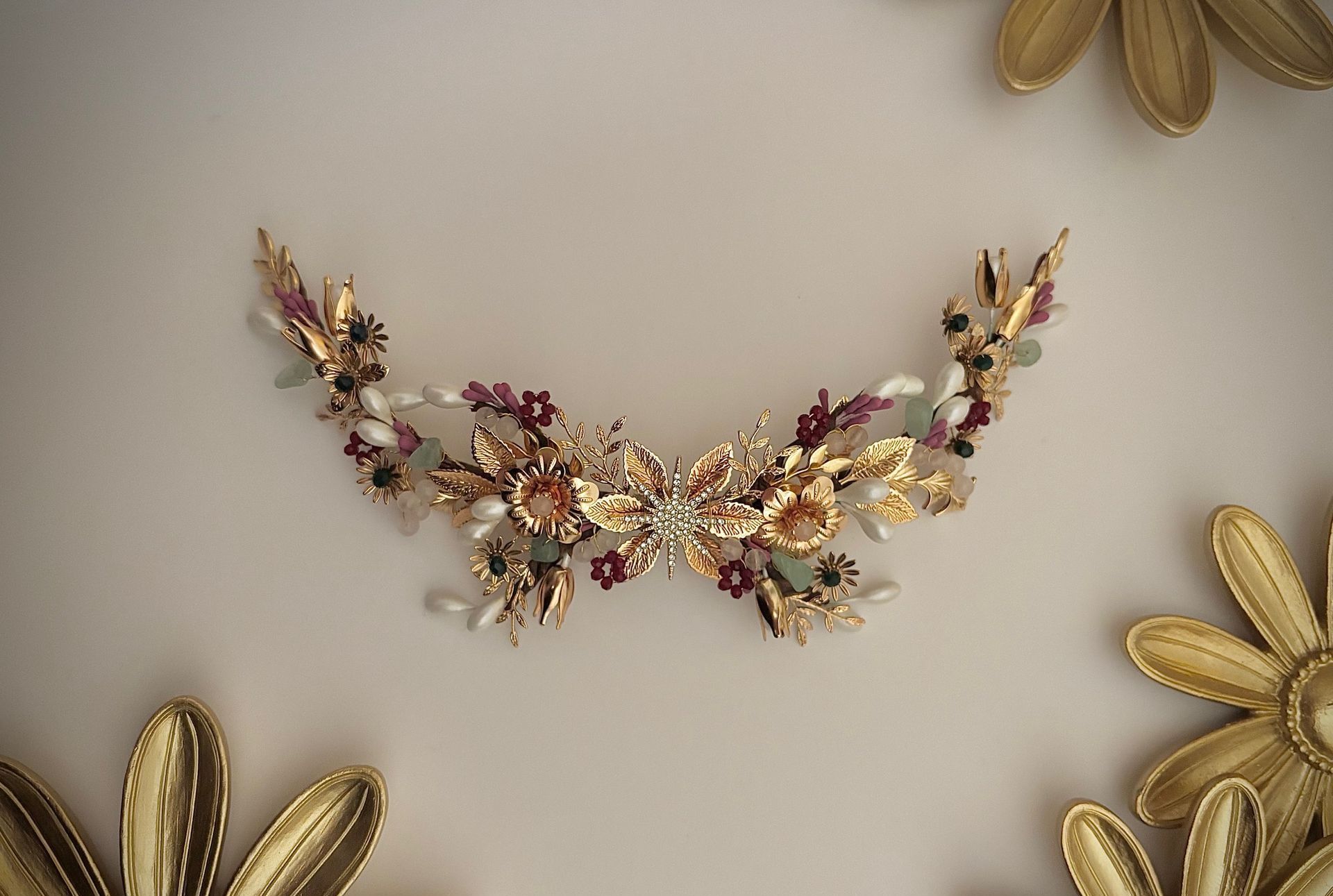 Los tocados de novia, al igual que la ropa y los complementos del día a día, siguen unas modas o tendencias que en muchas ocasiones se van repitiendo a lo largo del tiempo - "la moda siempre vuelve". En este caso, los tocados pueden convertirse en tendencia por su forma o por sus materiales. Hay años en los que se llevan piezas más grandes y otros en los que se estila el minimalismo. Épocas en los que las novias buscan tocados de flores de porcelana, otras en las que quieren lucir un tocado de metal y otras en las que el cristal es el protagonista absoluto. Hasta hace relativamente poco, la porcelana se llevaba casi todas las miradas por su sofisticación y personalización. Las piezas de porcelana han sido tocados muy demandados por su capacidad de dar un toque de distinción a un look de novia sin quitar protagonismo al vestido. Son tocados que son muy personalizables al estar hechos de 0% a 100% de forma manual y artesanal. Cada pétalo, cada flor y cada detalle es confeccionado de forma manual. Actualmente esta tendencia está girando hacia las piezas de metal. Los tocados joya se han ido convirtiendo desde el 2023 en los favoritos de las novias. Y no es para menos, ya que se trata de piezas muy elegantes y con un brillo que aporta mucha frescura y favorece mucho al rostro. Las piezas de metal son sin duda mis favoritas para colocar en la parte frontal de la cabeza. Las tiaras joya aportan luminosidad por lo que alegran la cara y dan un toque elegante y sofisticado al conjunto. Los tocados joya pueden incluir piezas de porcelana. En mis creaciones acostumbro a meter flores hechas de porcelana para dar un toque boho y romántico a la pieza. Otra de las piezas estrella este año 2024 serán las horquillas en todas sus expresiones - horquillas de estrellas, horquillas de flores de porcelana, horquillas compuestas por hojas... Cada tipo de horquilla es capaz de transmitir y aportar un estilo o toque a tu estilismo de novia. Independientemente de las modas o las tendencias, cada novia tiene que seguir su propio estilo y sentirse segura y confiada en su gran día. De nada vale verse en las fotos unos años más tarde y sentirse disfrazada por haber querido seguir una moda del momento. Hay piezas atemporales perfectas para cualquier época y al ser personalizadas, todas ellas pueden adaptarse a tus gustos y estilo.
