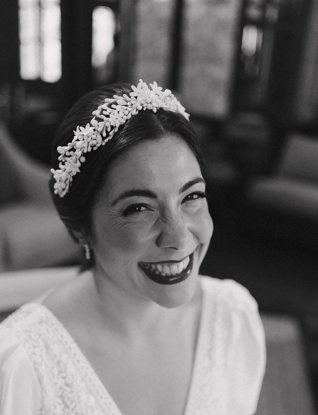 Las piezas de metal son sin duda mis favoritas para colocar en la parte frontal de la cabeza. Las tiaras joya aportan luminosidad por lo que alegran la cara y dan un toque elegante y sofisticado al conjunto. Los tocados joya pueden incluir piezas de porcelana. En mis creaciones acostumbro a meter flores hechas de porcelana para dar un toque boho y romántico a la pieza.